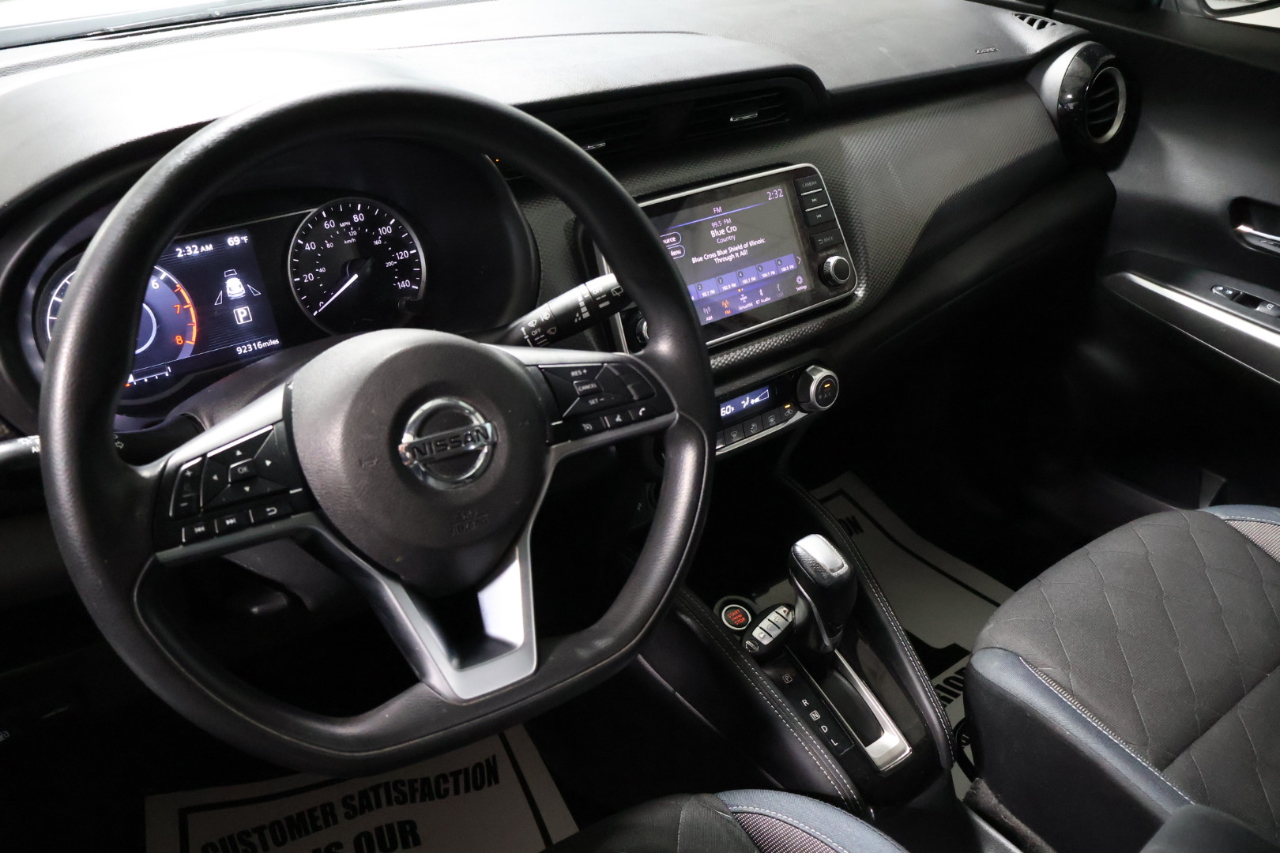 Inside, the Kicks SV offers a roomy and comfortable cabin with premium cloth seating and a driver-focused layout. With seating for five and generous cargo space, it’s designed to handle both daily errands and weekend adventures. The 60/40 split-folding rear seats provide flexibility for larger items.
